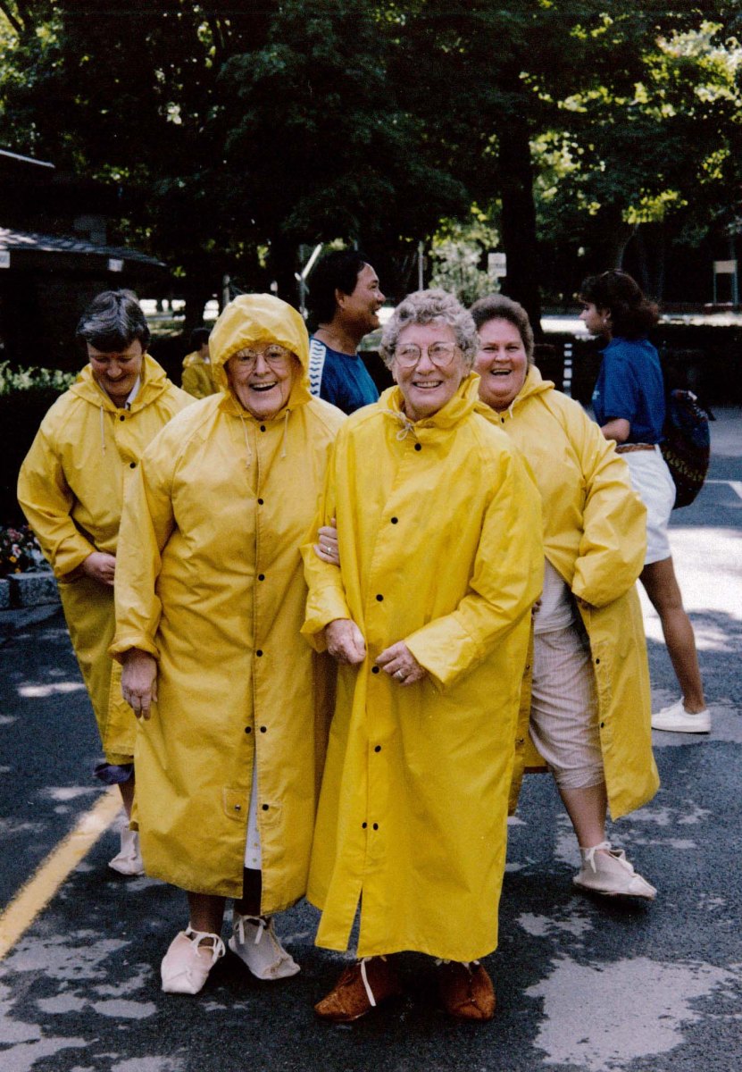 Description: Although it rained on the opening day of the Chapter, Sisters Josetta Butler and Christian Molidor arrive to begin.